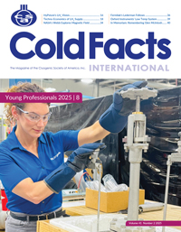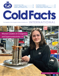 Read the six latest issues of Cold Facts for FREEThese are the six most recent issues of Cold Facts magazine. Click on a cover to download the issue. A limited number of print copies of past issues are available for $35 each. Please contact the CSA office to check availability. Please note that the Buyer's Guide PDF only includes the editorial and advertising content. Print copies contain the Buyer's Guide listings. Visit our online Buyer's Guide for the most up-to-date categories, company listings and profiles. Cold Facts is copyrighted by the Cryogenic Society of America, Inc. All rights reserved. Downloads are not for duplication or distribution in any form without express prior consent of the Cryogenic Society of America, Inc. We specifically prohibit storing the entire PDF or any portions thereof, including the extracted text, on any private or public website. |