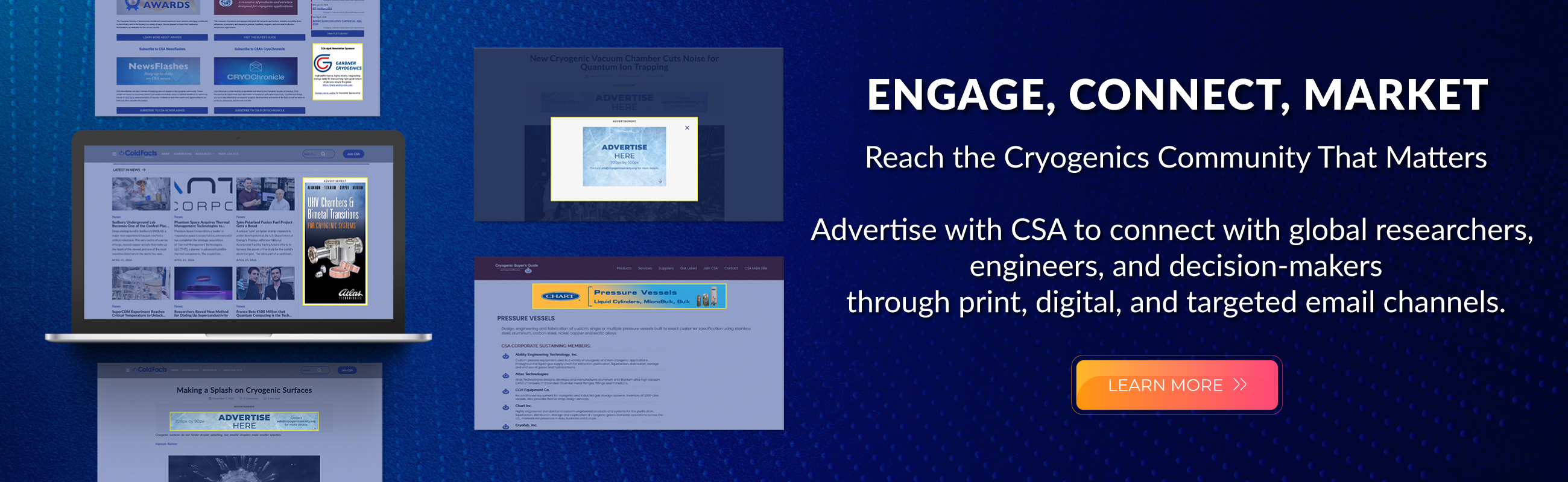 CSA Job CenterThe CSA Job Center is your clearinghouse for cryogenic jobs, whether you are an employer looking for an employee, or an individual seeking employment. CSA Awards and RecognitionsThe Cryogenic Society of America has established several awards to honor persons who have contributed to the industry and to the Society in a variety of ways. We are pleased to honor their leadership. Nominations are welcome for the various awards. LEARN MORE ABOUT AWARDSSubscribe to CSA NewsflashesCSA Newsflashes are short notices of breaking news of interest to the cryogenic community. These emails are issued as necessary (about 2 per week) and include notice of editorial deadlines for upcoming issues of Cold Facts, announcements of courses, conferences and other events and opportunities in our field and other valuable information. SUBSCRIBE TO CSA NEWSFLASHESCSA's Cryogenic Buyer's GuideThis resource of products and services designed for cryogenic applications, includes everything from adhesives, cryocoolers, and dewars to greases, liquefiers, magnets, and wire used in ultra-low temperature applications. VISIT THE BUYER'S GUIDESubscribe to CSA's CryoChronicleCryoChronicle is a free monthly e-newsletter published by the Cryogenic Society of America (CSA). Focused on the latest news and information in cryogenics and superconductivity, CryoChronicle brings you up-to-date information on research projects, developments and events in the field, as well as news on products, companies, and the national labs. SUBSCRIBE TO CSA'S CRYOCHRONICLE |